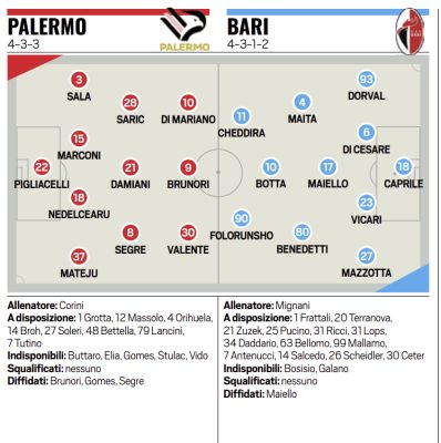 L'edizione odierna di Tuttosport si sofferma sulle probabili formazioni della sfida tra Palermo e Bari.