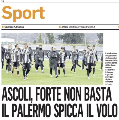 L'edizione odierna de "Il Corriere Adriatico" si sofferma sulla vittoria del Palermo in casa dell'Ascoli. L’Ascoli non riesce a uscire...