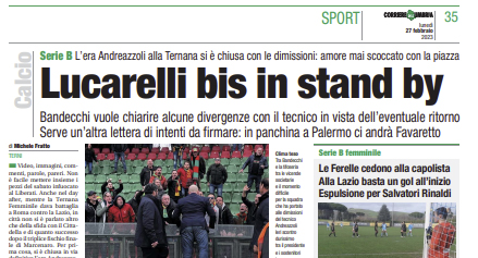 Corriere dell’Umbria: “Ternana, Lucarelli bis in stand-by. Serve un’altra lettera di intenti da firmare: in panchina a Palermo ci andrà Favaretto”