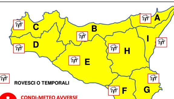 Meteo: allerta gialla in Sicilia per la giornata di domani
