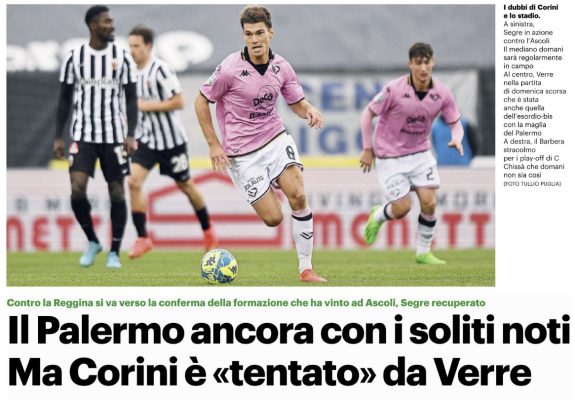 L'edizione odierna de "Il Giornale di Sicilia" si sofferma sulle scelte di Corini in vista della sfida contro la Reggina....