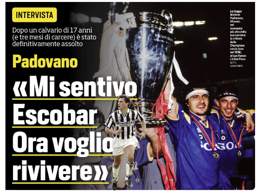 L'edizione odierna de "Il Corriere dello Sport" riporta un'intervista a Michele Padovano. La libertà, ora, è nell’aria fresca che Michele...