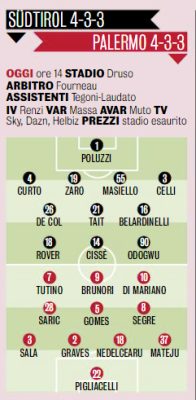 L'edizione odierna de "La Gazzetta dello Sport" si sofferma sulle probabili formazioni del match tra Sudtirol e Palermo in programma...