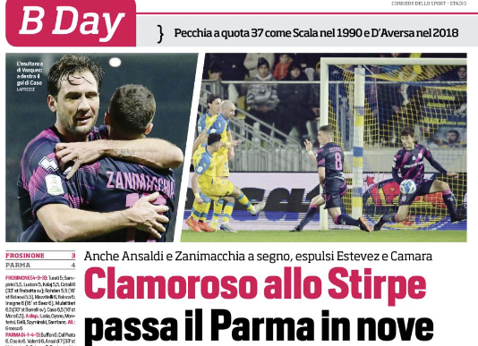 L'edizione odierna de "Il Corriere dello Sport" si sofferma sull'impresa del Parma che ha vinto in casa del Frosionone. Il...