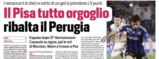 L'edizione odierna de "Il Corriere dello Sport" si sofferma sulla gara del Pisa vinta contro il Perugia. Nella circostanza più...