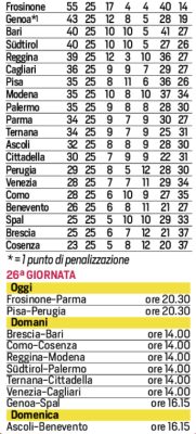L'edizione odierna de "Il Corriere dello Sport" si sofferma sul programma della 26^ giornata di serie B e la classifica...