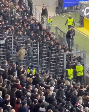 Violenta rissa nel settore ospiti del Deutsche Bank Park, dove si è giocata Eintracht Francoforte-Napoli di Champions League. Prima dell'inizio...