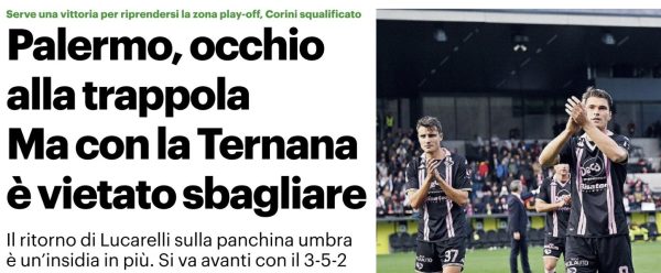 Gds: “Palermo, occhio alla trappola. Con la Ternana è vietato sbagliare”