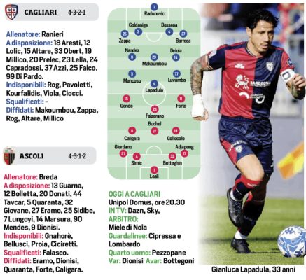 L'edizione odierna de "Il Corriere dello Sport" si sofferma sulle probabili formazioni del match di oggi tra Cagliari e Ascoli....