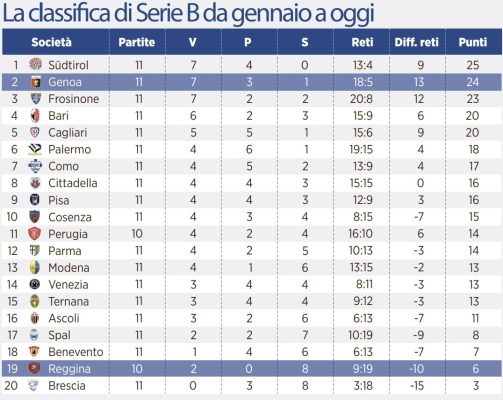 L'edizione odierna de "Il Secolo XIX" ha stilato una classifica di serie B alternativa che raccoglie solo i punti conquistati...