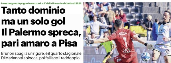 L'edizione odierna de "Il Giornale di Sicilia" si sofferma sul pari del Palermo a Pisa. La rabbia e l'orgoglio, usiamo...