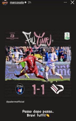 Attraverso le proprie storie Instagram Marco Sala ha commentato il pari rimediato dal Palermo contro il Pisa. In alto quanto...