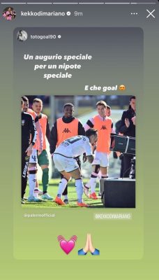 Attraverso le proprie storie Instagram Totò Schillaci, zio di Francesco Di Mariano, si è congratulato con l'attaccante rosanero per il...