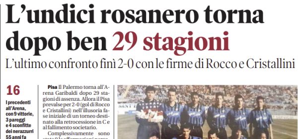 L'edizione odierna de "Il Tirreno" si sofferma sulla gara tra Pisa e Palermo e i precedenti. Il Palermo torna all’Arena...