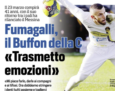 L'edizione odierna di Tuttosport si sofferma sul Messina e il portiere Fumagalli, definendolo "il Buffon della C". Il Buffon della...