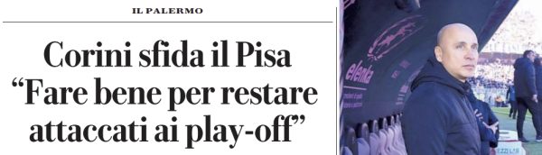 L'edizione odierna de "La Gazzetta dello Sport" si sofferma sulle parole di Corini in vista del match contro il Pisa....