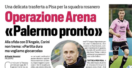 L'edizione odierna de "Il Corriere dello Sport" si sofferma sulla gara che il Palermo giocherà domani contro il Pisa. Col...