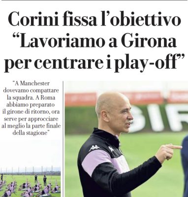 L'edizione odierna de "La Repubblica" si sofferma su Corini che fissa l'obiettivo playoff. «Lavoreremo dal punto di vista tecnico-tattico, ma...