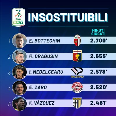 Attraverso il proprio profilo Facebook la Lega B ha pubblicato la Top5 dei calciatore "insostituibili", ovvero che hanno giocato più...