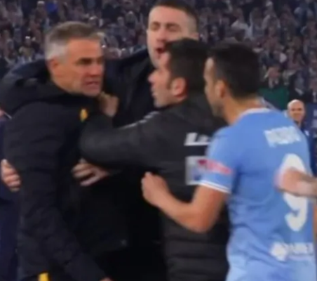 Rissa in campo nel derby della Capitale. Panchina della Roma, rimessa per la Lazio, Pedro si avvicina per prendere il...