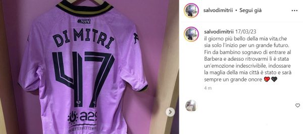 Il giovane rosanero Salvatore Di Mitri, attaccante Under 17 convocato ieri in prima squadra in occasione del match contro il...