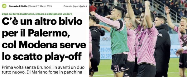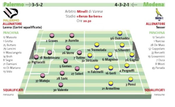 L'edizione odierna de "Il Giornale di Sicilia" si sofferma sulle probabili formazioni del match di oggi tra Palermo e Modena.