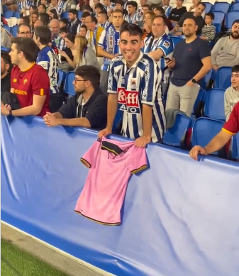 Una maglia rosanero spunta nel match di Europa League pareggiato dalla Roma contro il Real Sociedad. Un tifoso spagnolo, durante...