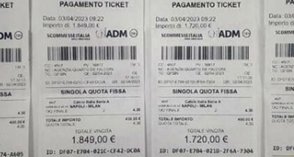 Incredibile vincita a Quarto. Come riferito da "Agimeg" un tifoso gioca per per quattro volte sulla vittoria del Milan contro...