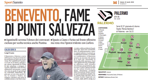 L'edizione odierna de "Il Mattino" si sofferma sul Benevento che oggi arriverà al Barbera con tanta fame di punti salvezza....