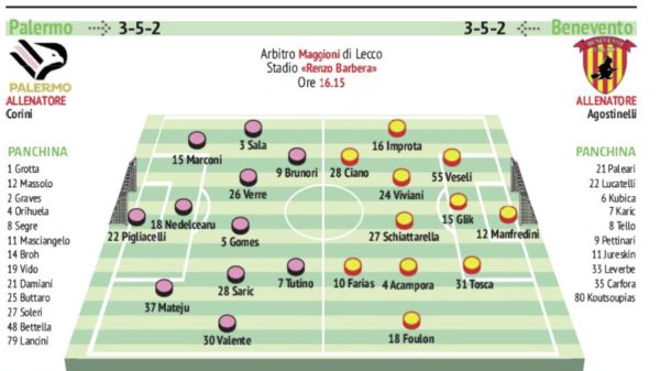 L'edizione odierna de "Il Giornale di Sicilia" stila le probabili formazioni del match in programma oggi tra Palermo e Benevento....