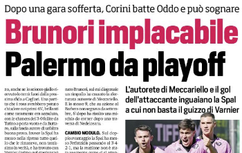 L'edizione odierna de "Il Corriere dello Sport" si sofferma sulla gara vinta ieri dal Palermo contro la Spal grazie ad...