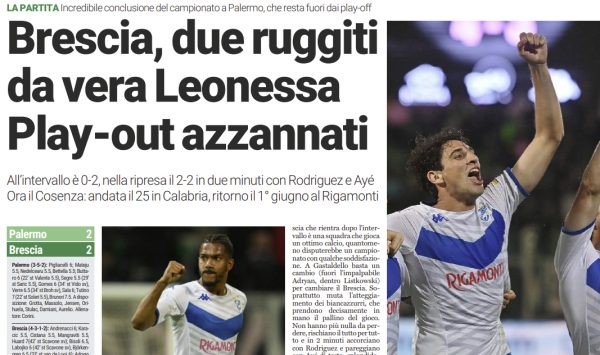 L'edizione odierna di Brescia Oggi si sofferma sul pari del Brescia in casa del Palermo e i playout conquistati. Due...