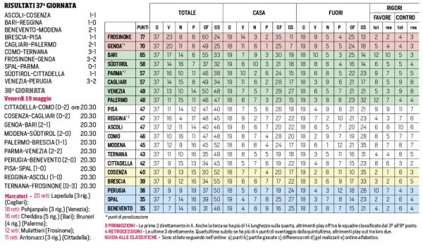 L'edizione odierna de "Il Corriere dello Sport" si sofferma sul programma dell'ultima giornata di B e la classifica aggiornata.