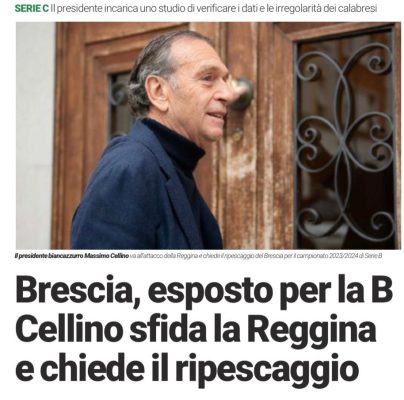 Brescia Oggi: “Cellino sfida la Reggina e chiede il ripescaggio”