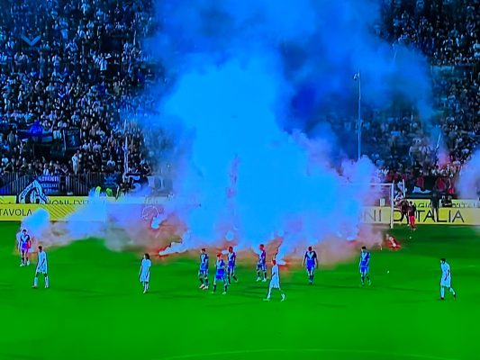 Playout serie B, Brescia-Cosenza: scoppia il caos dopo il pareggio dei rossoblu, tifosi di casa invadono il campo. Gara sospesa