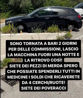 Come rende noto "Radio Bari" sui social spiacevole disavventura per Martina Pardini, compagna del terzino sinistro del Bari Giacomo Ricci....