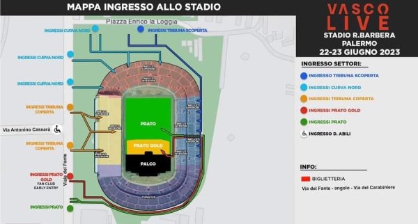 Manca ormai pochissimo al doppio concerto di Vasco Rossi a Palermo. L'organizzatore dell'Evento Carmelo Costa ha reso nota la mappa...