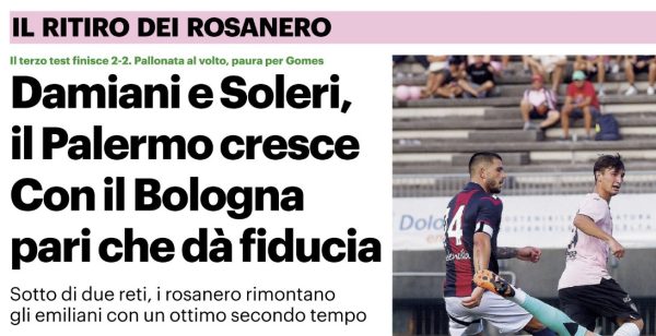 L'edizione odierna de "La Gazzetta dello Sport" si sofferma sul pareggio tra Bologna e Palermo L’amichevole col Palermo finisce 2-2...