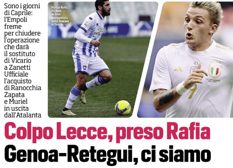 L'edizione odierna de "Il Corriere dello Sport" si sofferma sulle trattative del giorno in serie A. Il Lecce si aggiudica...