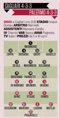L'edizione odierna de "Il Giornale di Sicilia" ha stilato le probabili formazioni del match di oggi tra Cagliari e Palermo....