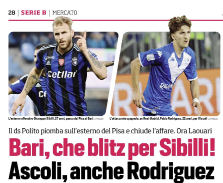 L'edizione odierna de "Il Corriere dello Sport" si sofferma sulle trattative del giorno in serie B. Giuseppe Sibilli è un...