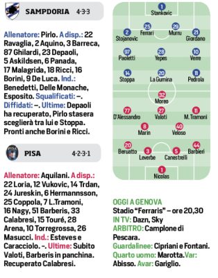 L'edizione odierna de "Il Corriere dello Sport" riporta le probabili formazioni del match che aprirà la seconda giornata di serie...