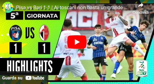 Termina 1-1 la gara di serie B tra Bari e Pisa. Ecco gli highlights: