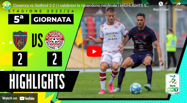 Termina 2-2 la gara di serie B tra Cosenza e Sudtirol. Ecco gli highlights: