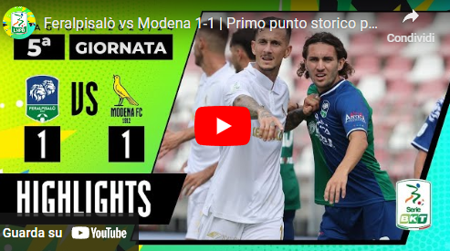 Termina 1-1 la gara di serie B tra Feralpisalò e Modena. Ecco gli highlights: