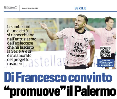Tuttosport: “Di Francesco convinto “promuove” il Palermo”