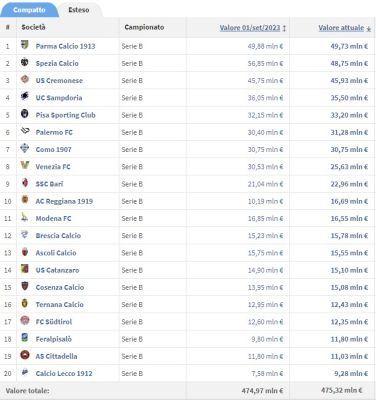 Concluso il calciomercato estivo, Transfermarkt.it ha pubblicato una classifica con il valore delle rose del campionato di Serie B. Al...