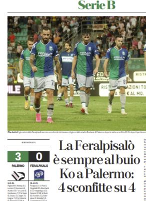 L'edizione odierna di "Brescia Oggi" si sofferma sulla Feralpisalò sconfitta a Palermo. Ancora tanti, troppi errori condannano la Feralpisalò alla...