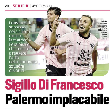 L'edizione odierna de "La Gazzetta dello Sport" si sofferma sulle pagelle del match vinto ieri dal Palermo contro la Feralpisalò.