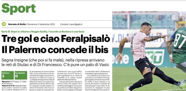 L'edizione odierna de "Il Giornale di Sicilia" si sofferma sulle pagelle del match vinto ieri dal Palermo contro la Feralpisalò.